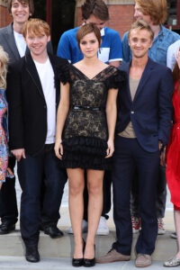 LONDON, ENGLAND - JULY 06: L-R Rupert Grint, Emma Watson and Tom Felton attend a photocall for Harry Potter and the Deathly Hallows at The Renaissance St Pancras Hotel on July 6, 2011 in London, England. (Photo by Dave Hogan/Getty Images)