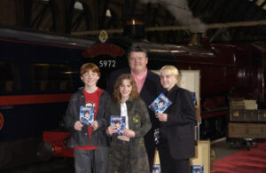UNITED KINGDOM - MAY 09: Robbie Coltrane With Rupert Grint, Emma Watson And Tom Felton, (the Cast Of Harry Potter In Front Of The Hogwarts Express), Harry Potter Dvd Launch, Passengers At Kings Cross Station Couldn't Believe Their Eyes When They Saw The Howarts Express Arrive .bringing With It The Cast Of Harry Potter And A Host Of Celebrities.who Went Onto A Lavish Party On Platform 9 And Three Quarters. (Photo by Dave Benett/Getty Images)
