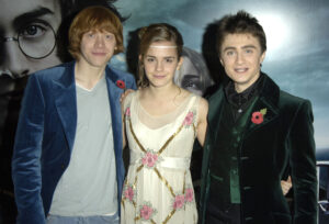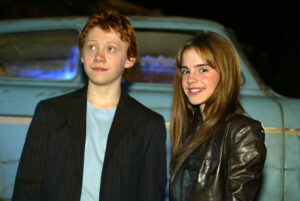 376506 01: Warner Bros. Pictures announced August 21, 2000 that the young actor Daniel Radcliffe, center, has been named as the young actor who will play Harry Potter, in the upcoming film adaptation of the popular books by J.K. Rowling. Newcomers Rupert Grint, right, and Emma Watson will be taking on the roles of Ron and Hermione, Harry's best friends at Hogwarts. (Courtesy of Warner Bros./Newsmakers)